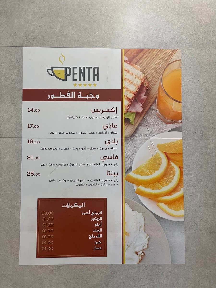 From the moment you step into La Penta, you're greeted with a panoramic view that sets it apart from typical cafes. The ambiance exudes a comfortable, inviting vibe perfect for early risers, thanks to its commendable breakfast menu that resonates well with customers. One testimonial from Walid Ahmadi captures this perfectly: "J’aime l’endroit position panoramique, j’ai testé le petit déjeuner a 5h du matin a un prix très raisonnable, c’était parfait, je recommande vivement," highlighting both the delightful view and the superbly priced breakfast options.